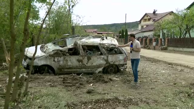 Apa căzută în cantităţi impresionante au umflat periculos un pârâu. S-a ales praful de 3 maşini târâte mai bine de 1 kilometru. Şi mai grav, grindina a acoperit localităţi întregi. A distrus culturi şi pomi fructiferi plini de rod. Hidrologii au emis un cod galben de inundaţii pentru şase râuri din ţară.