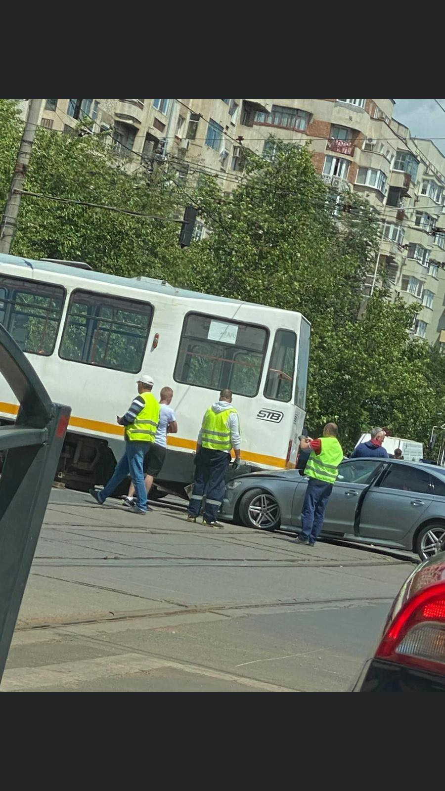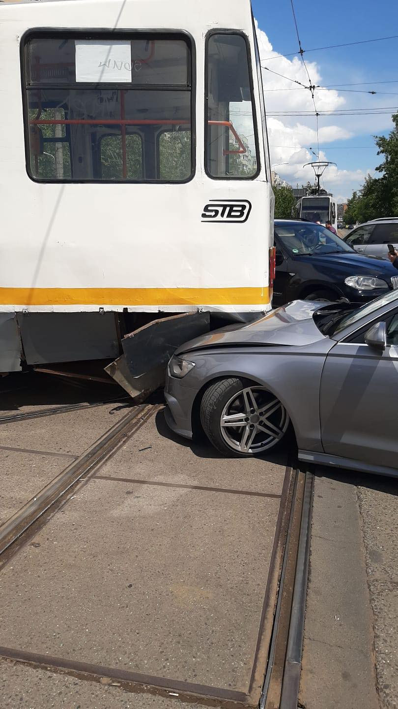 Un tramvai a deraiat și a lovit puternic un autoturism, într-o intersecție din București