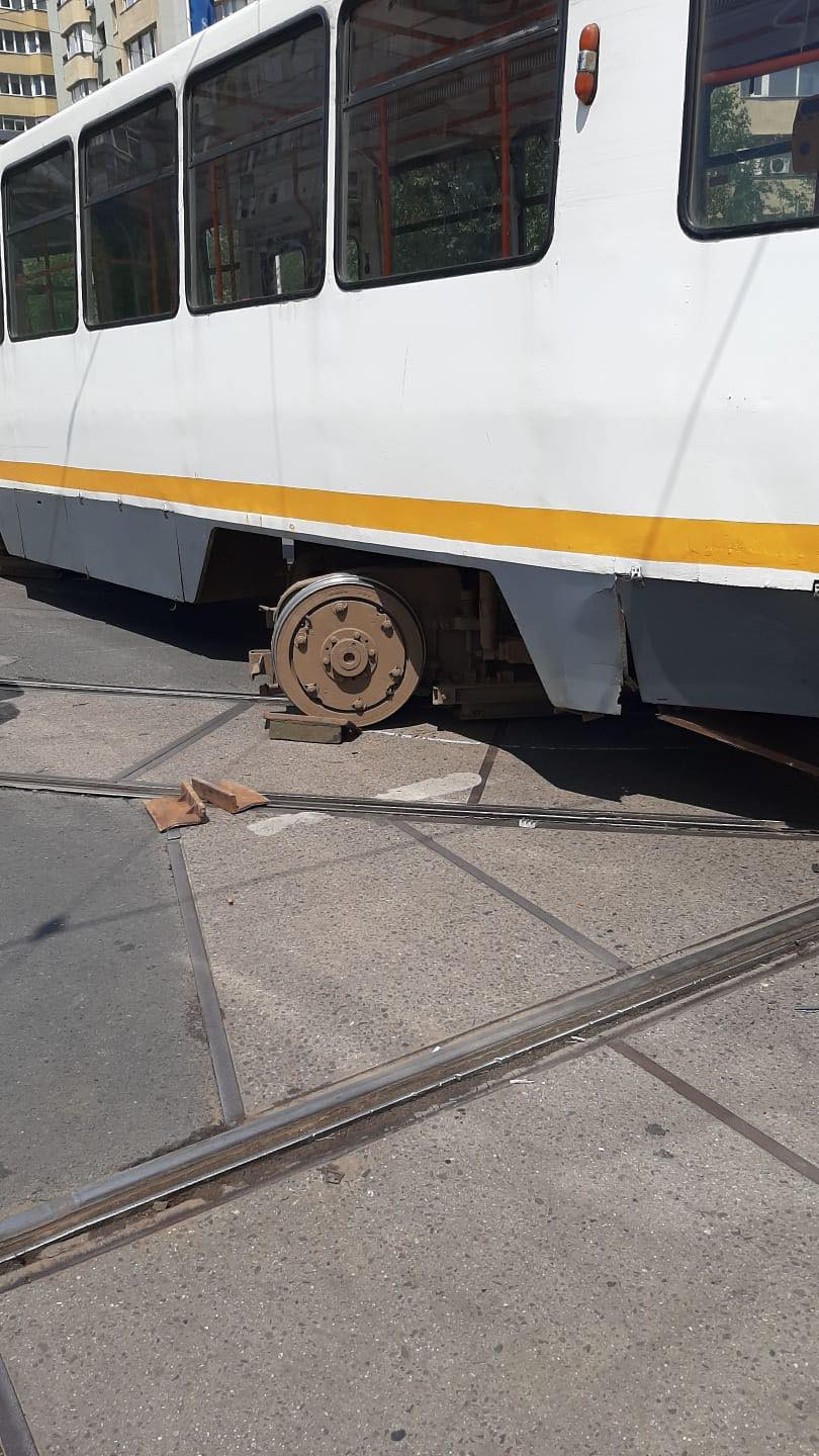 Un tramvai a deraiat sâmbătă după-amiază în București, provocând un accident.