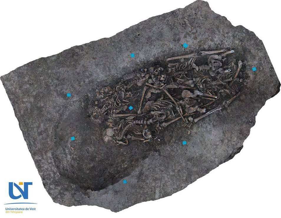Un mormânt colectiv, din vremea ciumei, în care erau aşezate şase schelete umane de adulţi şi unul de copil, a fost găsit de arheologi, pe un şantier din Timişoara, în apropierea centrului oraşului, scrie News.ro.