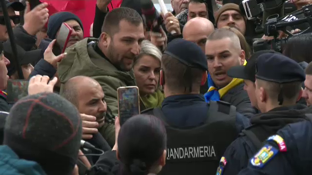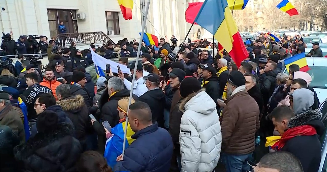 Susţinătorii lui Georgescu flutură steaguri şi strigă lozinci: "Justiţie, nu corupţie", "Libertate", "Jos Guvernul".