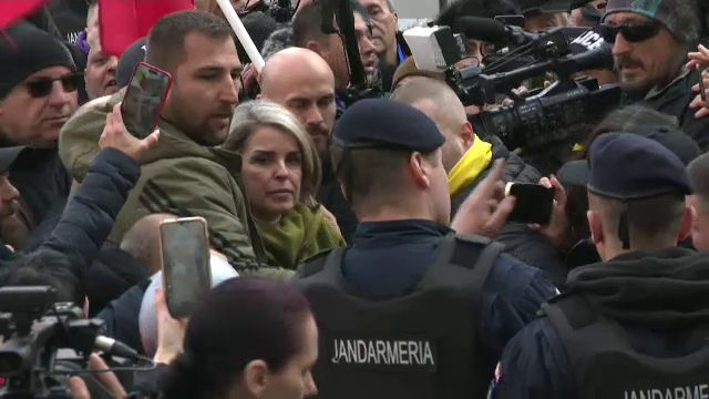 UPDATE 15:45 Soția lui Călin Georgescu, Cristela, a ajuns la Parchetul General în uralele susținătorilor, care strigă „Turul 2 înapoi” și „Cristela”.