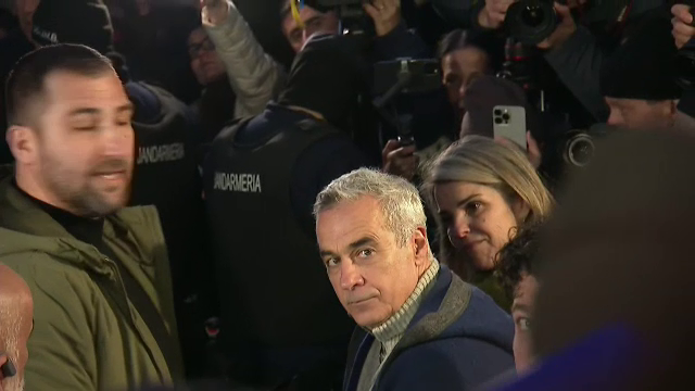 El a fost aşteptat de către soţia sa, Cristela Georgescu, care l-a îmbrăţişat. Alături de ea, se afla un grup masiv de susţinători care au scandat ”Georgescu preşedinte”.