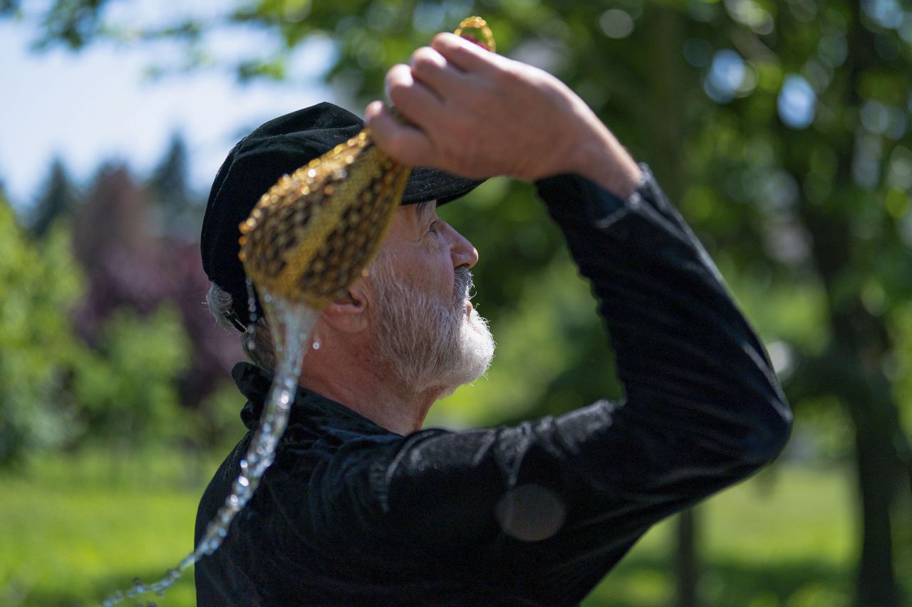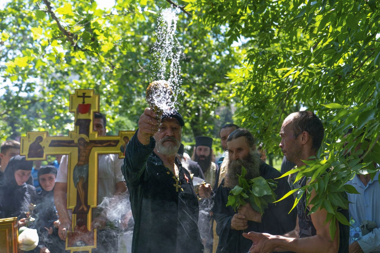 Gigi Becali a apărut cu o cruce uriașă și agheasmă pe Calea Victoriei, după Bucharest Pride. GALERIE FOTO