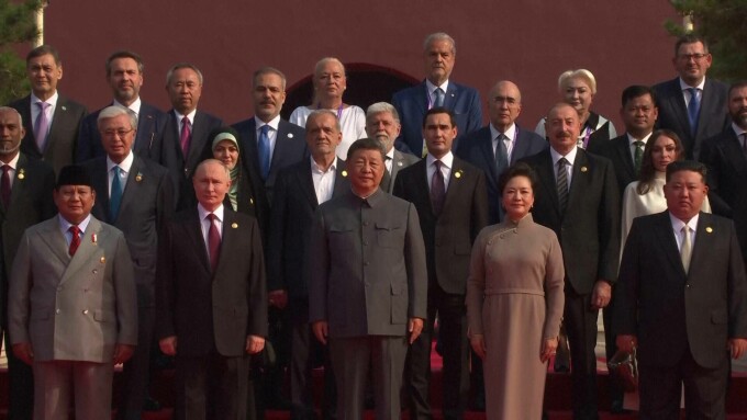 Soții Năstase și Viorica Dăncilă au fost plasați în ultimul rând, după cum se vede în imaginile publicate de televiziunea chineză de stat și de AP.