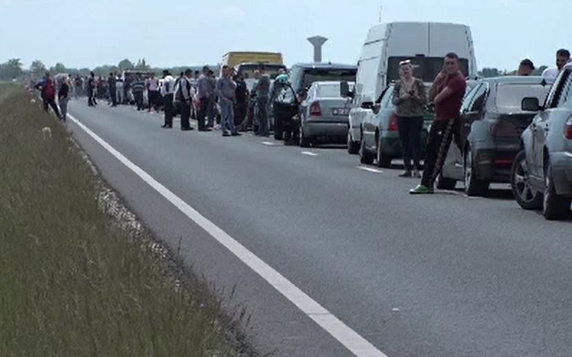 Pe sensul de ieșire mașinile erau parcate chiar pe DN7, la intrarea în orașul Nădlac. Coloana se întinde pe 10 km. Au fost însă destui care au încercat să se bage în față aşa că a fost nevoie de intervenția jandarmilor și a polițiștilor. Graba i-a lăsat fără permisul de conducere și au fost și amendați.