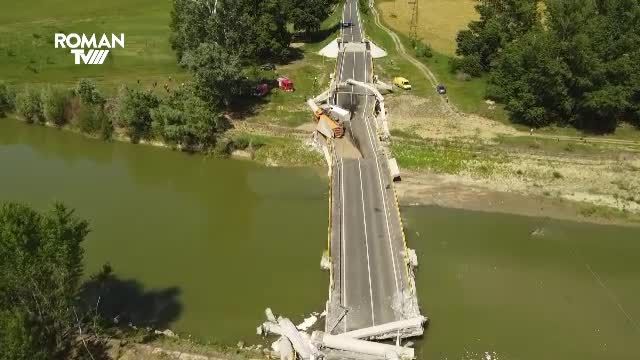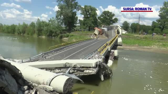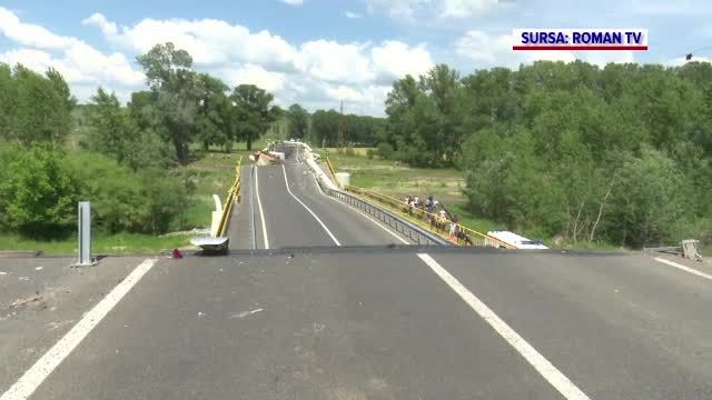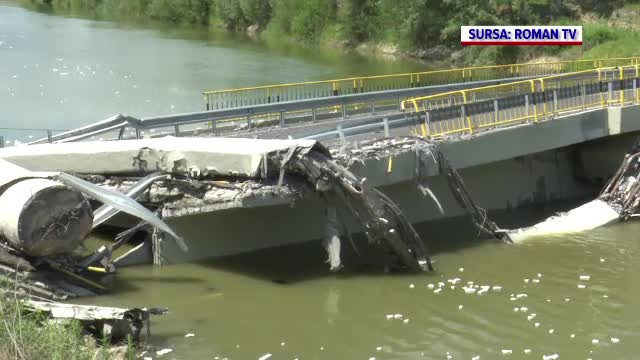 Imagini de la înălțime cu podul prăbușit. Președintele CJ Neamț, în 2021: „O lucrare complexă, s-a lucrat foarte bine”