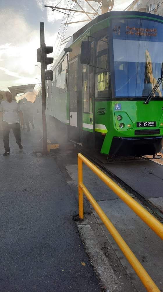 În prima zi de traseu, dintr-unul dintre cele trei tramvaie noi din București a ieșit fum. Ce explicație oferă STB. FOTO