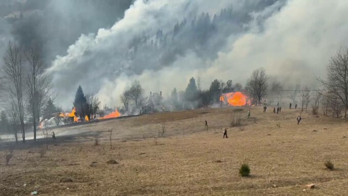 În altă zonă a judeţului, mai multe case au fost amenințate de flăcări uriașe.