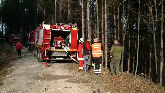 40 de oameni, pompieri militari, dar şi civili şi pădurari intervin la Zărneşti, unde vântul a dus o scânteie în pădure, apoi a înteţit focul.