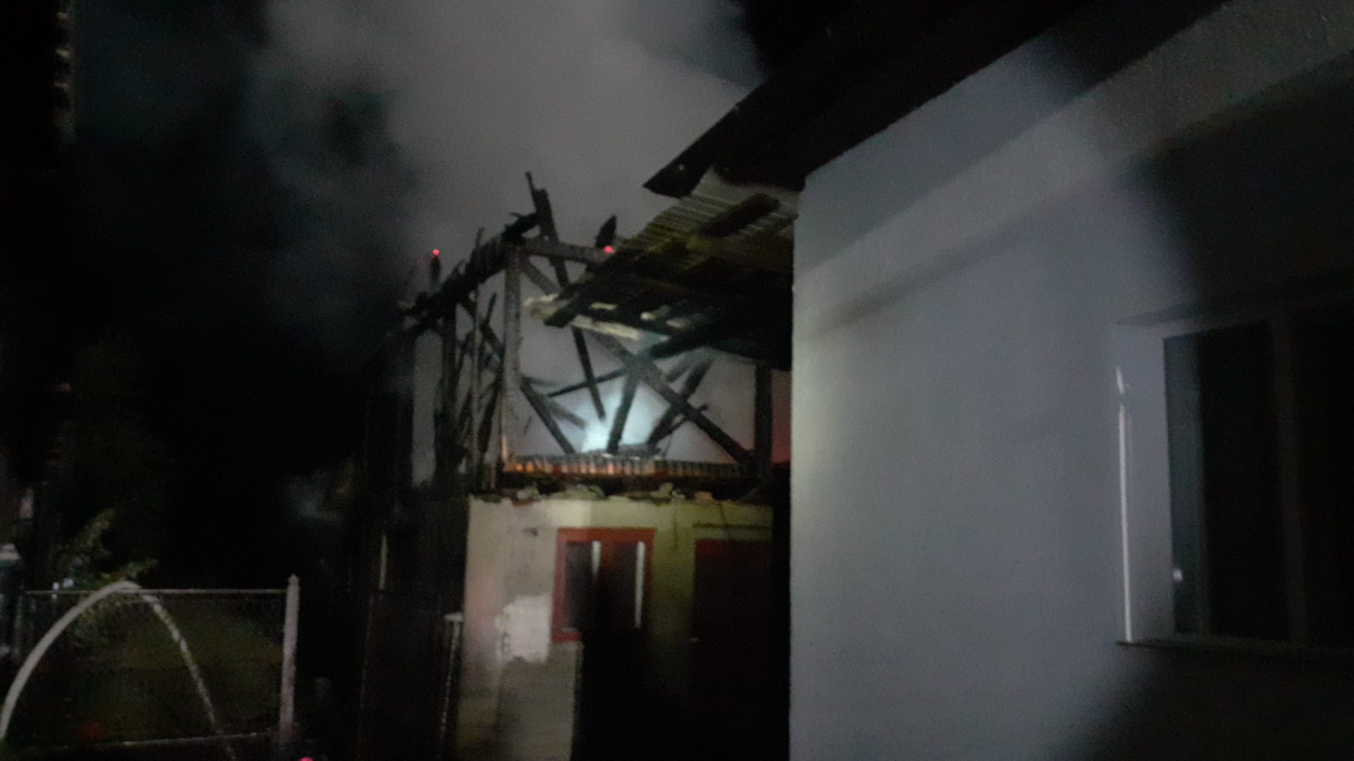 În urma evenimentului au mai ars lemne de foc și s-au degradat tavanele din două încăperi și o ușă din PVC.