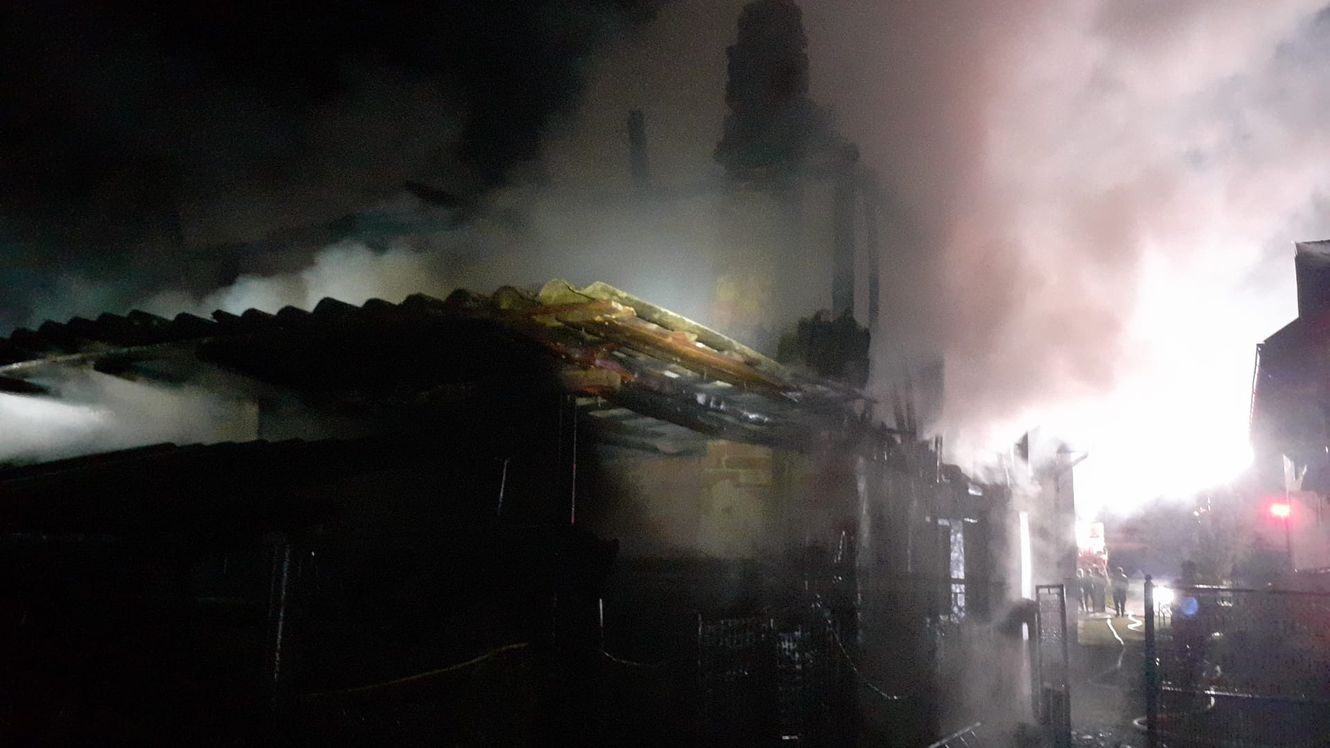 Forțele de intervenție ajunse la locul solicitării au constat că incendiul se manifesta generalizat, cu flăcără deschisă și degajări mari de fum la o locuință și anexele care se aflau în imediata apropiere de aceasta.