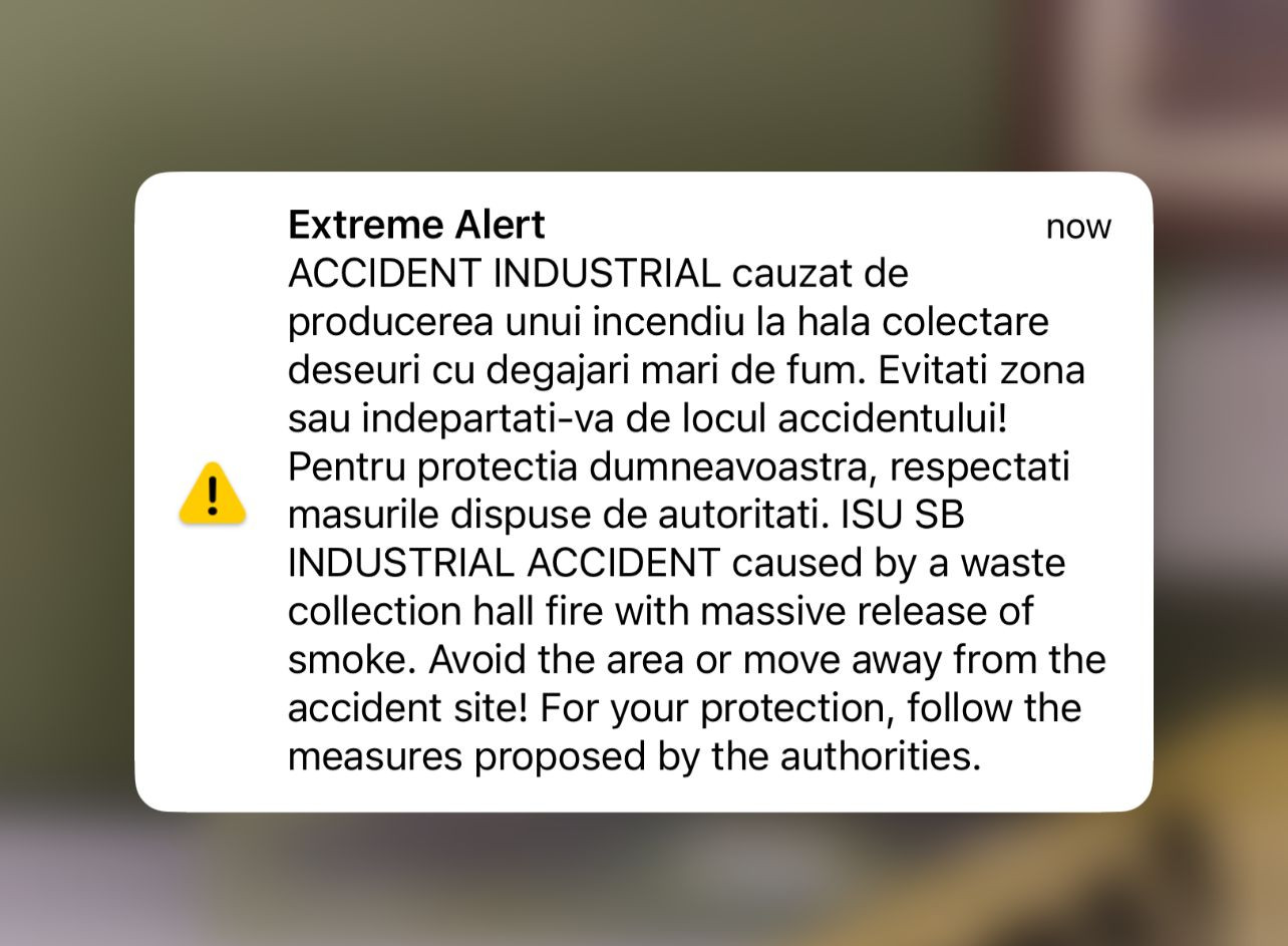 Preventiv, a fost transmisă o avertizare RO-Alert din cauza degajărilor mari de fum.