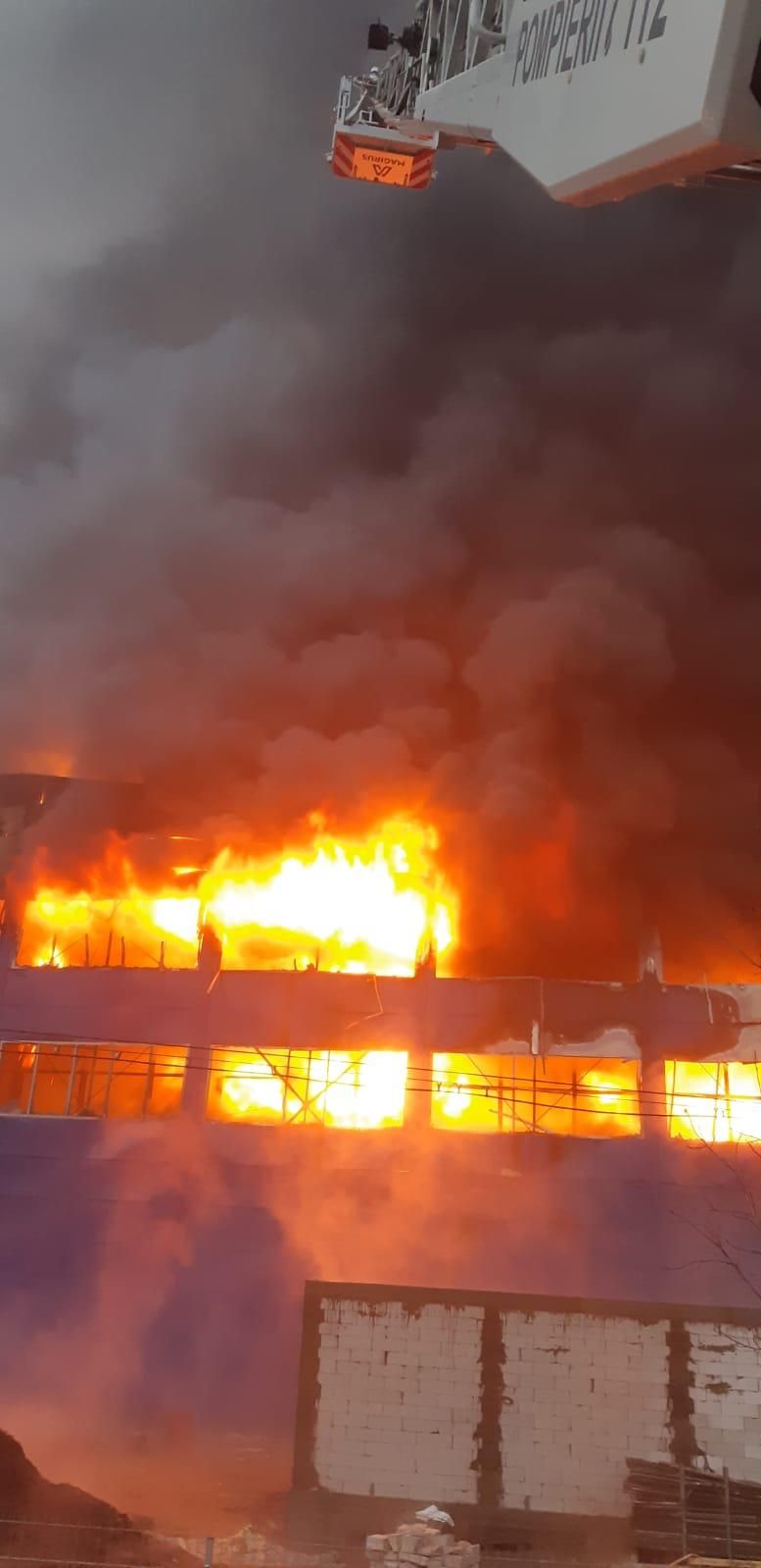 Alarma s-a dat în această dimineaţă la ora 7:30, când deja flăcările erau foarte mari! Hala care se afla în construcţii urma să fie inaugurată luna viitoare.