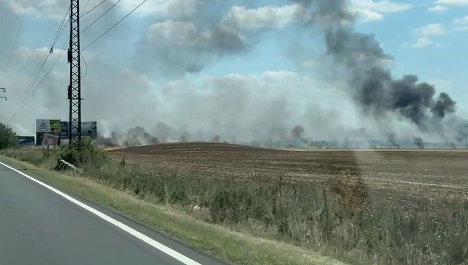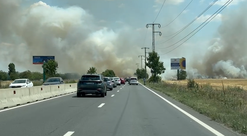 Incendiu de proporții pe un câmp de lângă Băicoi. Circulația pe DN1 este oprită | FOTO