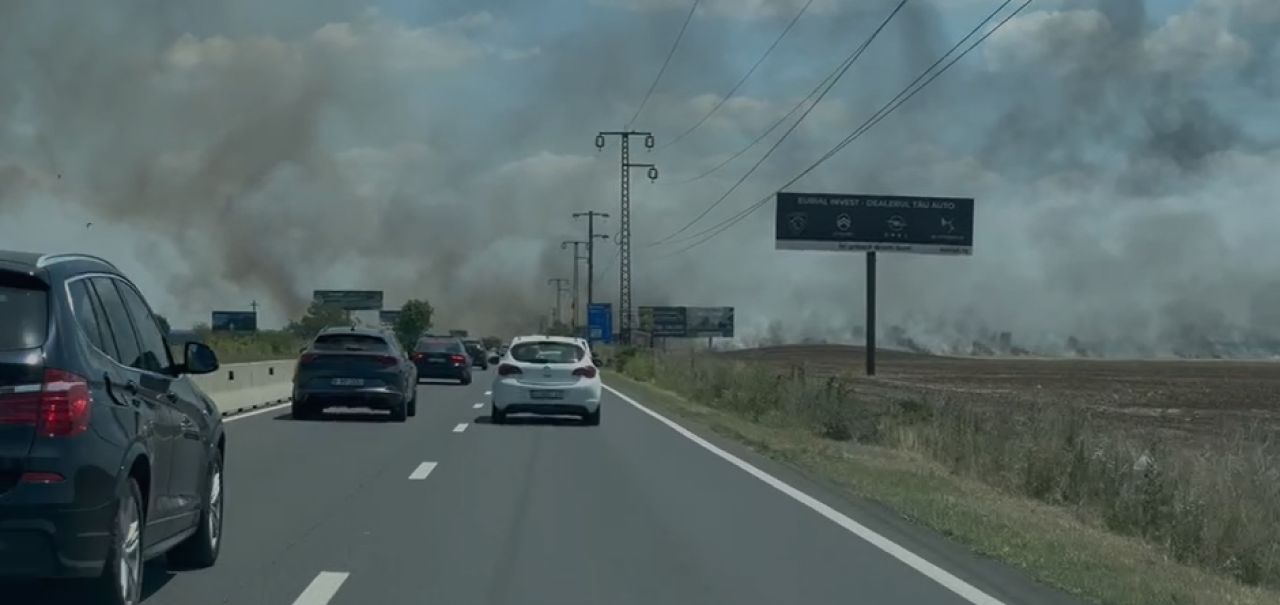 Un incendiu de proporții a izbucnit, duminică, pe un câmp de lângă Băicoi. Șoferii de pe DN1 au semnalat degajări mari de fum, circulația în zonă fiind oprită.