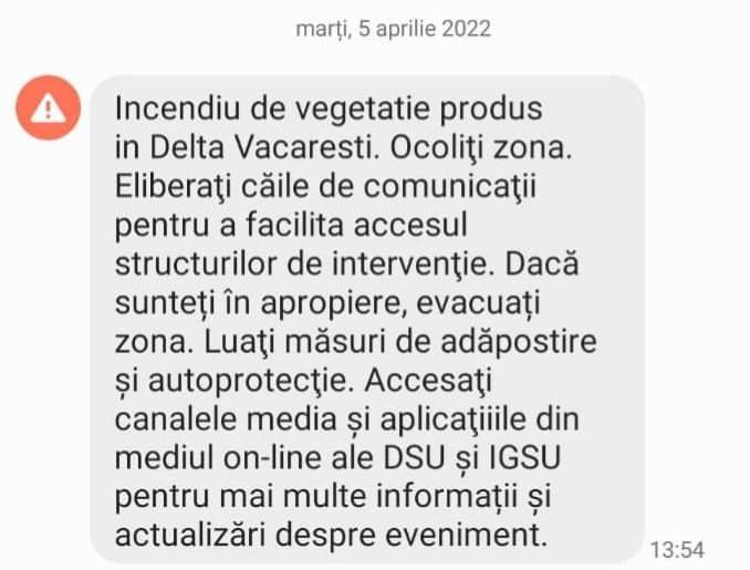 A fost remis mesaj prin sistemul RoAlert pentru informarea și avertizarea populației.