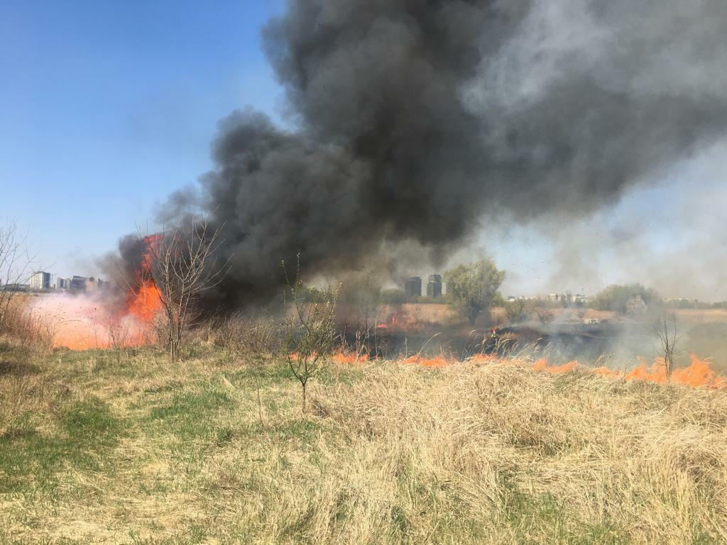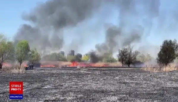Incendiu de vegetație în Delta Văcărești. Suprafaţa afectată este de aproximativ 15.000 de mp. VIDEO