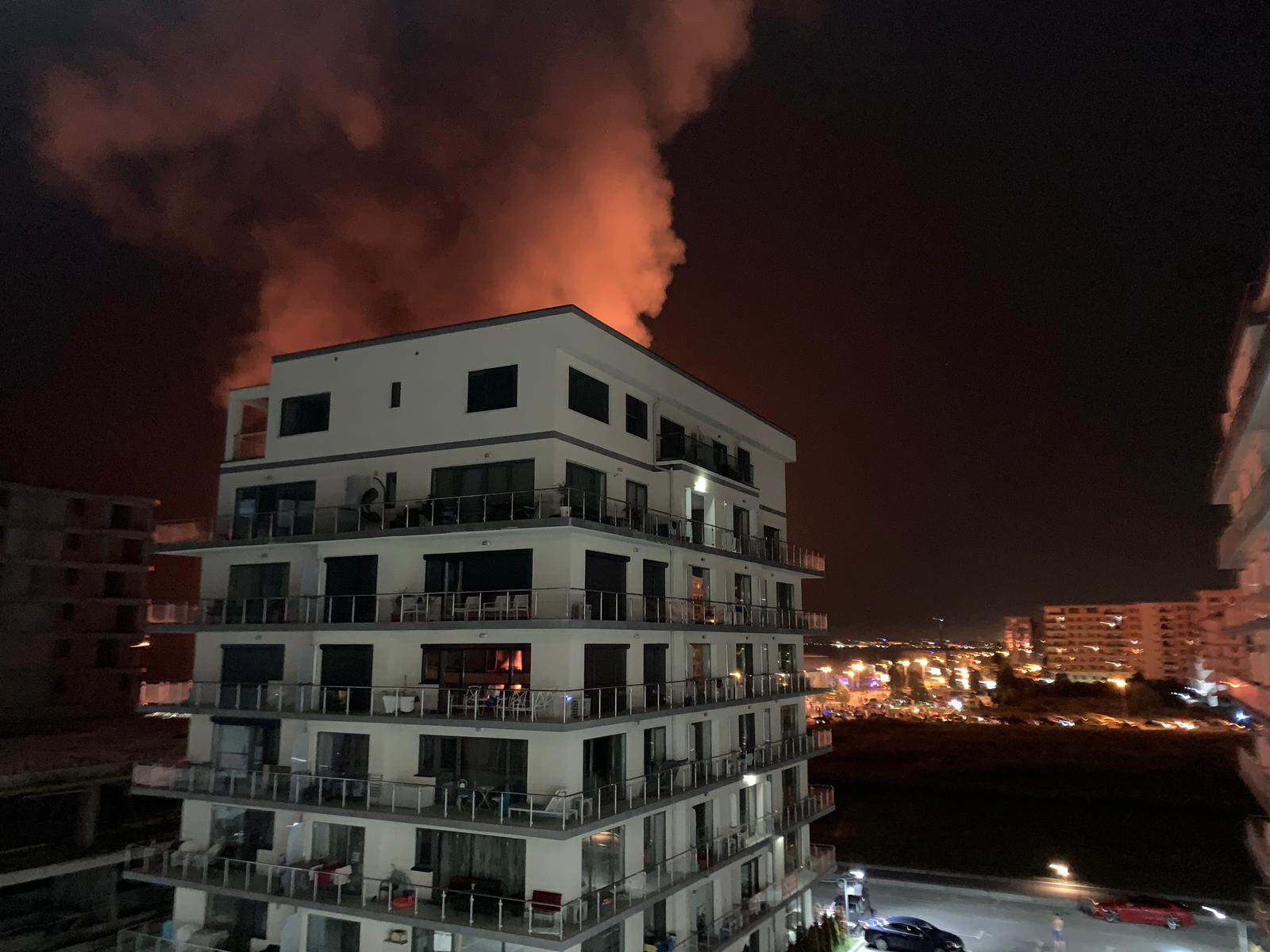 De mai bine de două ore zeci de pompieri intervin pentru stingerea incendiului din staţiunea mamaia a ost adusă inclusive o automacara de mare putere pentru lichidarea acestui incendiu. Flăcările sunt atât de puternice şi temperatura este atât de mare încât nu se poate sta la o distanţă mai mică de 50 de metri.