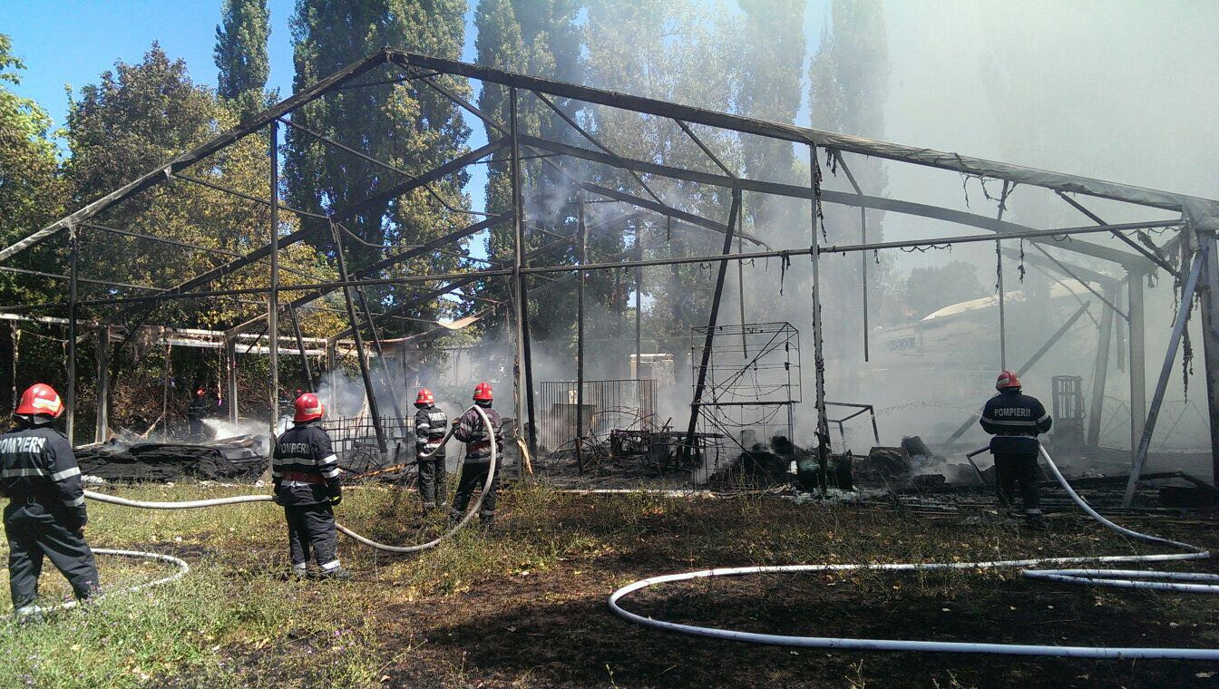 UPDATE 16:00 Nimeni nu a fost ranit, iar pompierii au reusit sa stapaneasca situatia abia dupa doua ore. Degajarile de fum au fost impresionante dar pentru ca totul s-a desfasurat in aer liber, nicio persoana nu a fost evacuata.