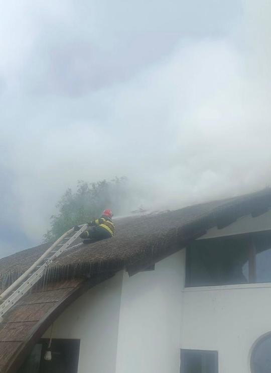 Incendiu la un bungalow al unei unităţi turistice din Tulcea. Pompierii intervin pentru stingerea flăcărilor. FOTO & VIDEO
