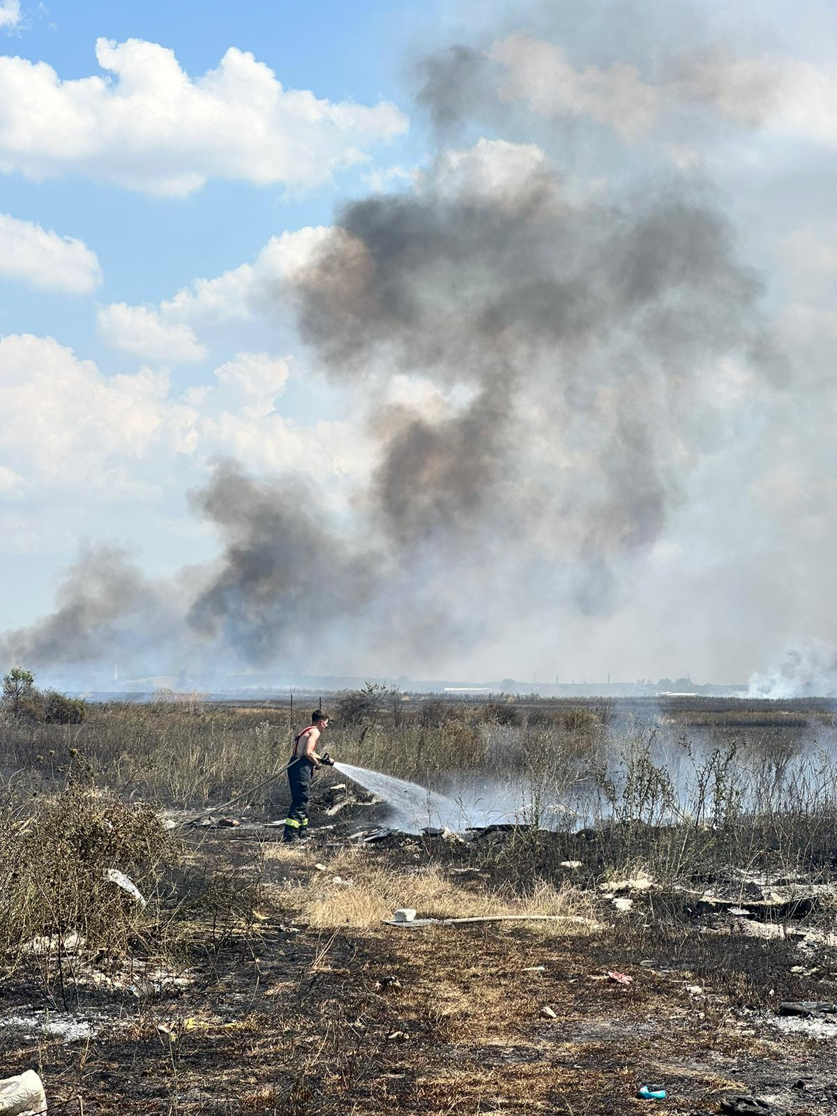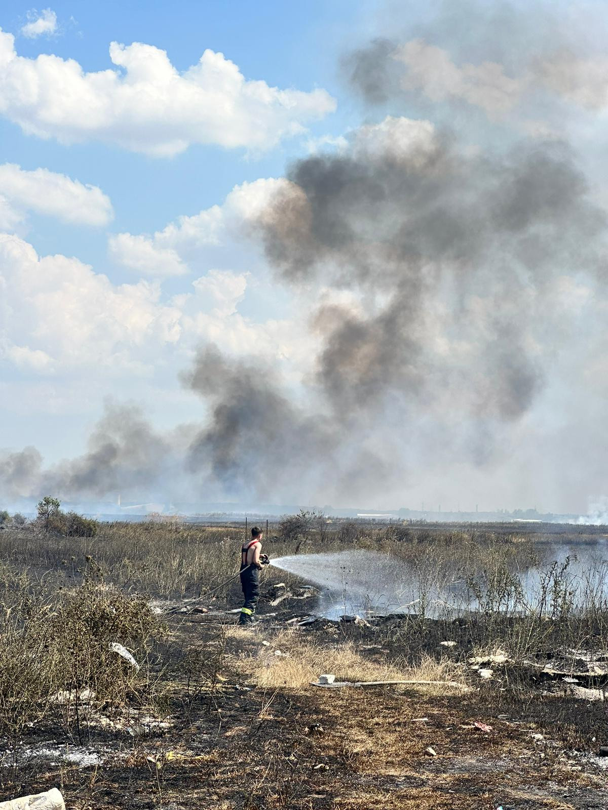 Pompierii au intervinit, marți, pentru stingerea unui incendiu de vegetație produs între localitățile Bragadiru și Măgurele din județul Ilfov.