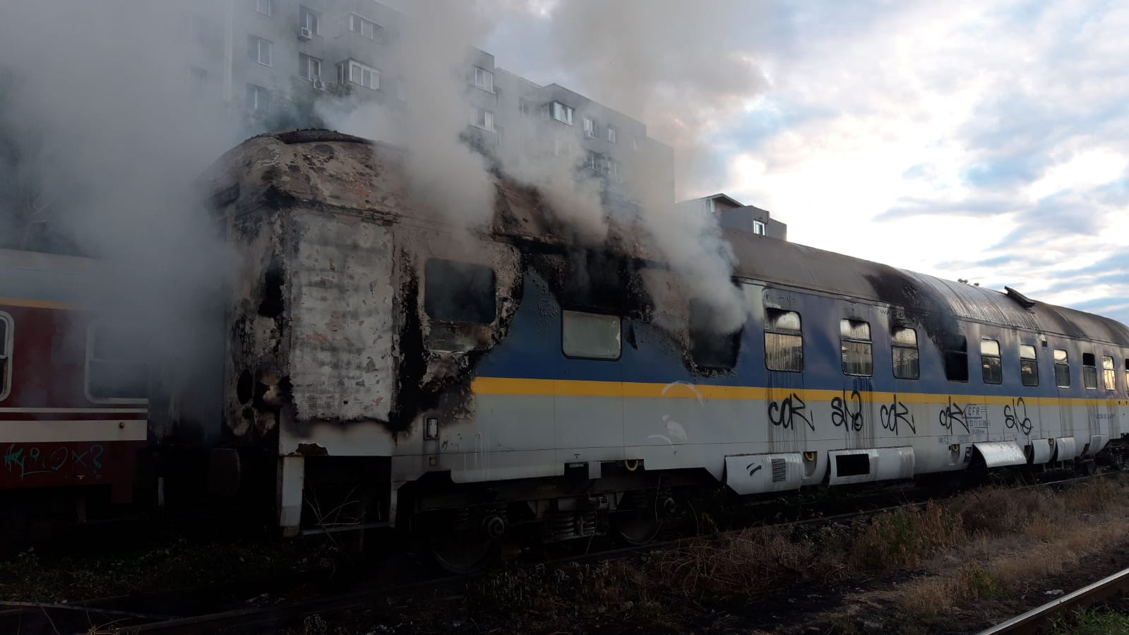 Două vagoane de tren dezafectate au fost cuprinse de flăcări la halta Prunaru.
