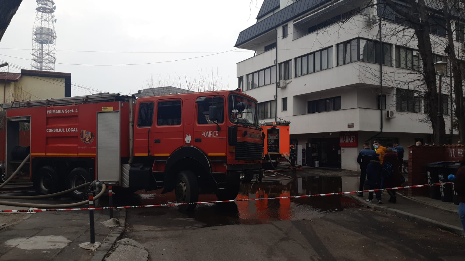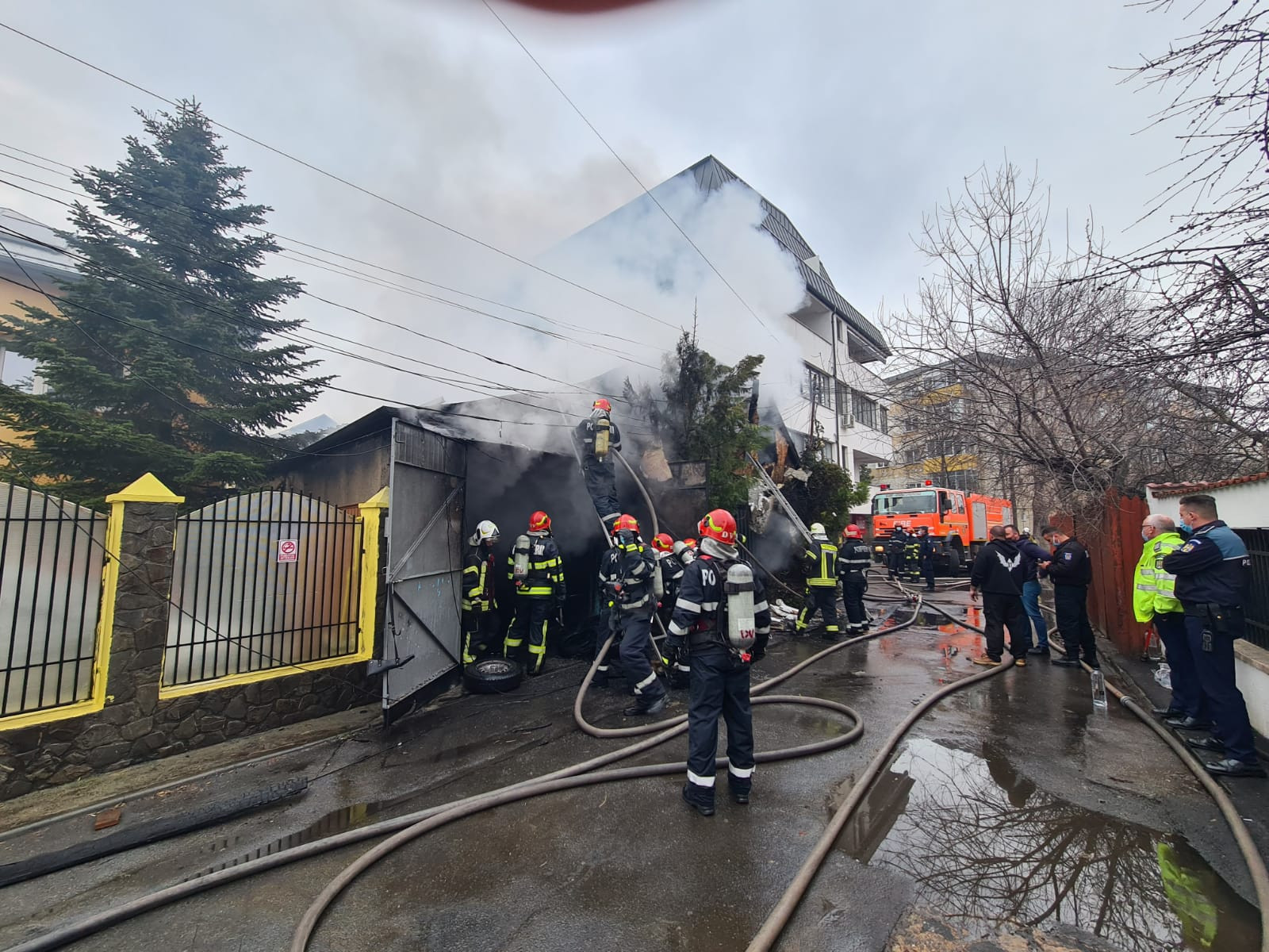 Acționează trei autospeciale de stingere și au fost trimise alte trei în sprijin. Nu sunt persoane rănite. Pericol de extindere a incendiului la vecinătăți.