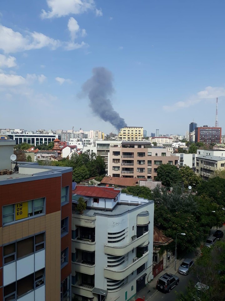 Incendiul a izbucnit pe strada Biharia, în zona Băneasa, fiind degajări mari de fum.
