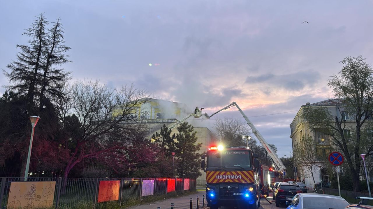 ”Incendiul se manifestă la etajul 1, pe o suprafață de 700 de metri pătrați, la o sală de spectacole. Clădirea se afla în curs de reabilitare. Se acționează cu 12 autospeciale de stingere, 3 autoscări”, au anunțat reprezentanții ISU București.
