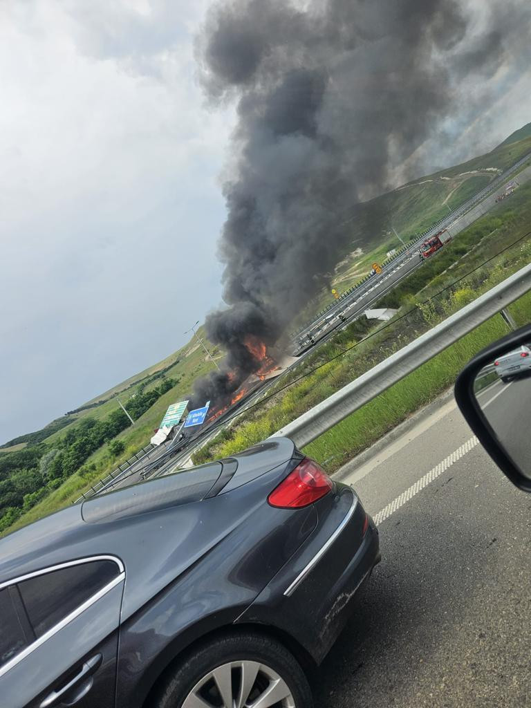 Potrivit Centrului Infotrafic din Inspectoratul General al Poliţiei Române, pe autostrada A10 Sebeş-Turda, la kilometrul 15, pe sensul către Turda, în municipiul Alba Iulia, judeţul Alba, s-a produs o explozie la un autocamion aflat în deplasare. Acesta a impactat parapetul median şi un indicator rutier, ulterior autovehiculul fiind cuprins de flăcări. Şoferul a suferit leziuni, fiind transportat la spital.