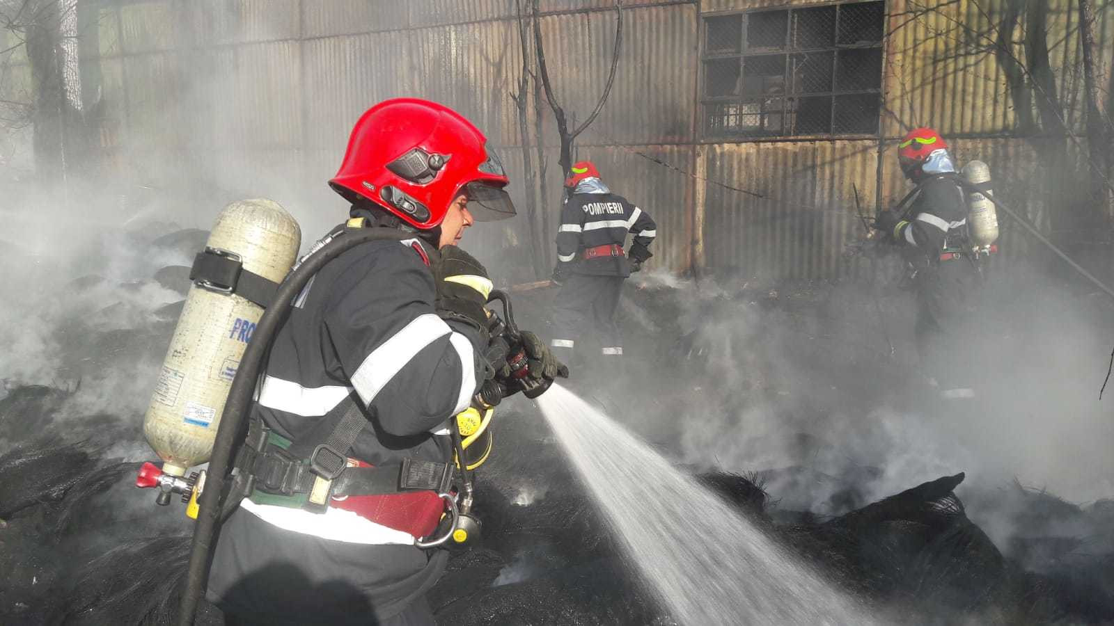 Incendiul a cuprins o suprafață de aproximativ 100 metri pătrați, fiind înregistrate degajări mari de fum.