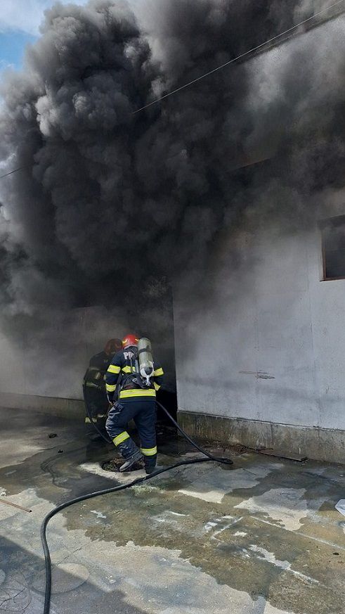 Echipele de intervenţie au constatat că incendiul se manifesta fără flacără, în interiorul depozitului cu o suprafaţă de 80 de metri pătraţi, cu degajare de fum provenită de la deşeuri de plastic.
