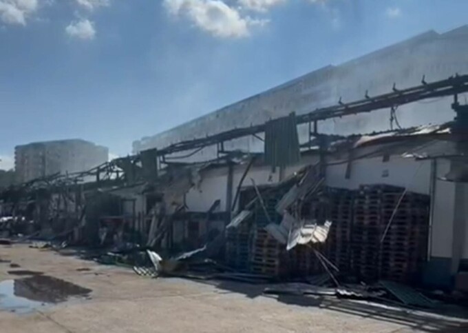 Incendiul s-a manifestat pe mai mult de 7.000 de metri pătraţi, iar structura metalică a construcţiei a fost afectată de temperaturile ridicate înregistrate pe timpul incendiului, astfel ca a fost distrusă în mare proporţie.