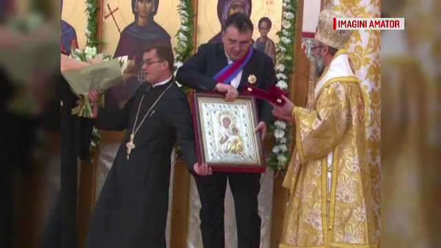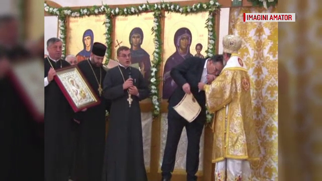Un preot a încercat să îi sărute mâna lui Marian Oprișan, șeful Consiliului Județean Vrancea, la o ceremonie religioasă, dedicată politicianului.
