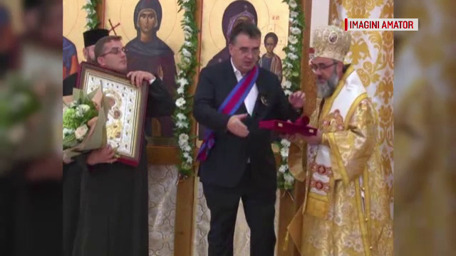 Incident la o slujbă religioasă. Un preot a încercat să îi pupe mâna lui Marian Oprișan