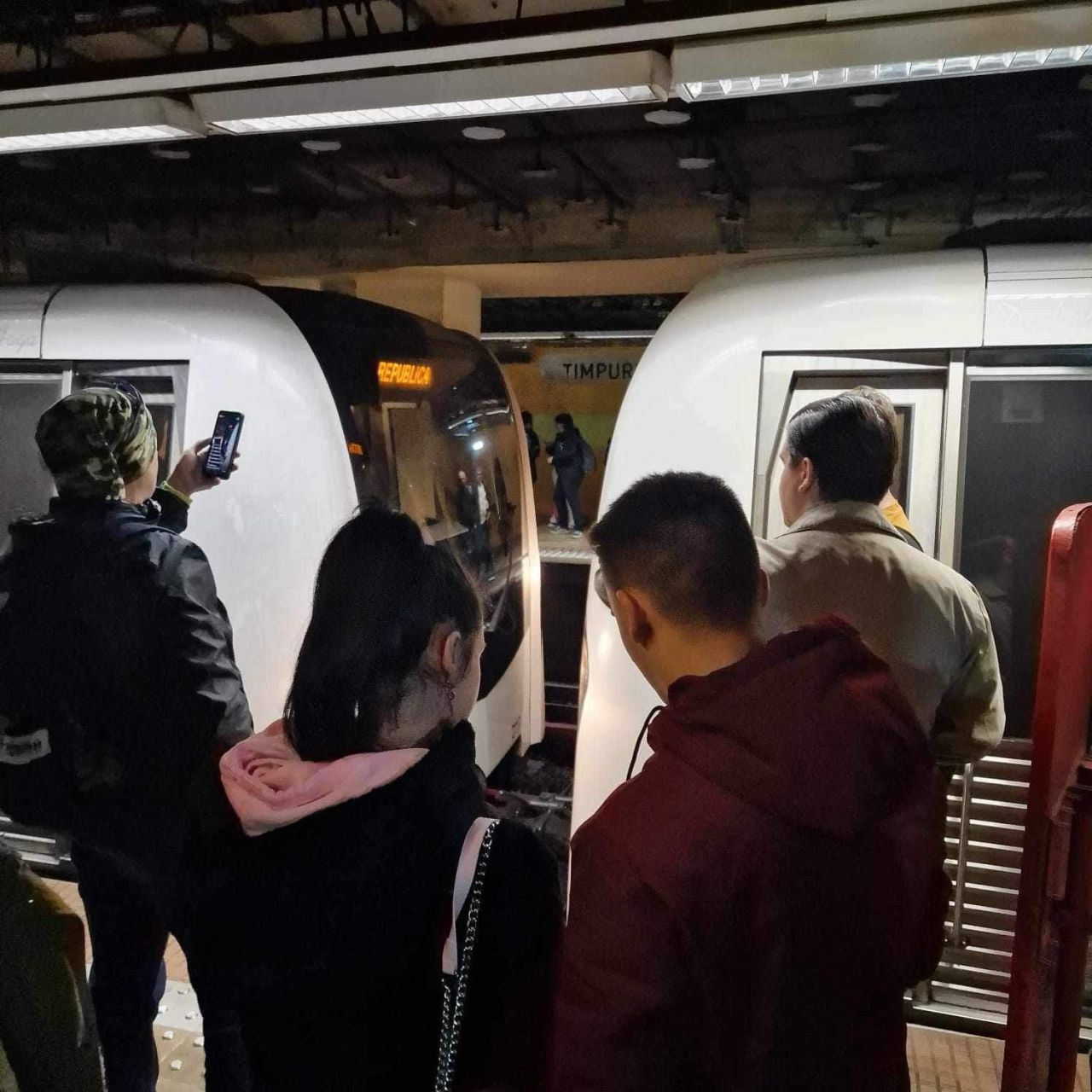 Incident la stația de metrou Timpuri Noi. Două trenuri s-au ciocnit ușor. GALERIE FOTO