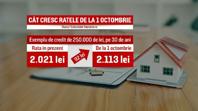 Creșterea se va vedea direct în rate. Pentru un credit ipotecar, de 250.000 de lei pentru o perioadă de 30 de ani rata lunară va fi mai mare cu aproape 100 de lei.