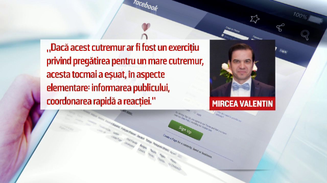 Valentin Mircea a criticat dur, sambata seara, prin mai multe postari pe Facebook, modul in care Inspectoratul General pentru Situatii de Urgenta a actionat imediat dupa seismul din noaptea de vineri spre sambata si a reprosat faptul ca nu ar exista proceduri clare de interventie pentru un asemenea caz. Ulterior insa postarile au fost sterse.
