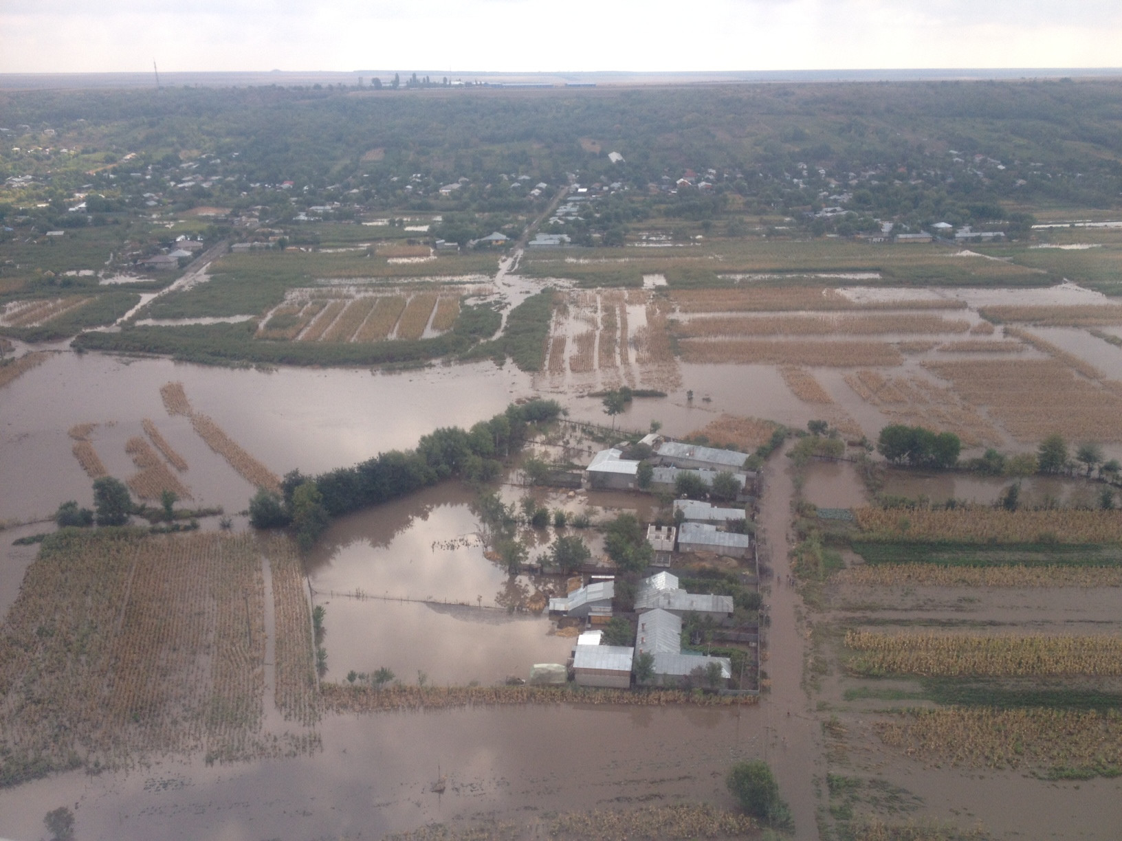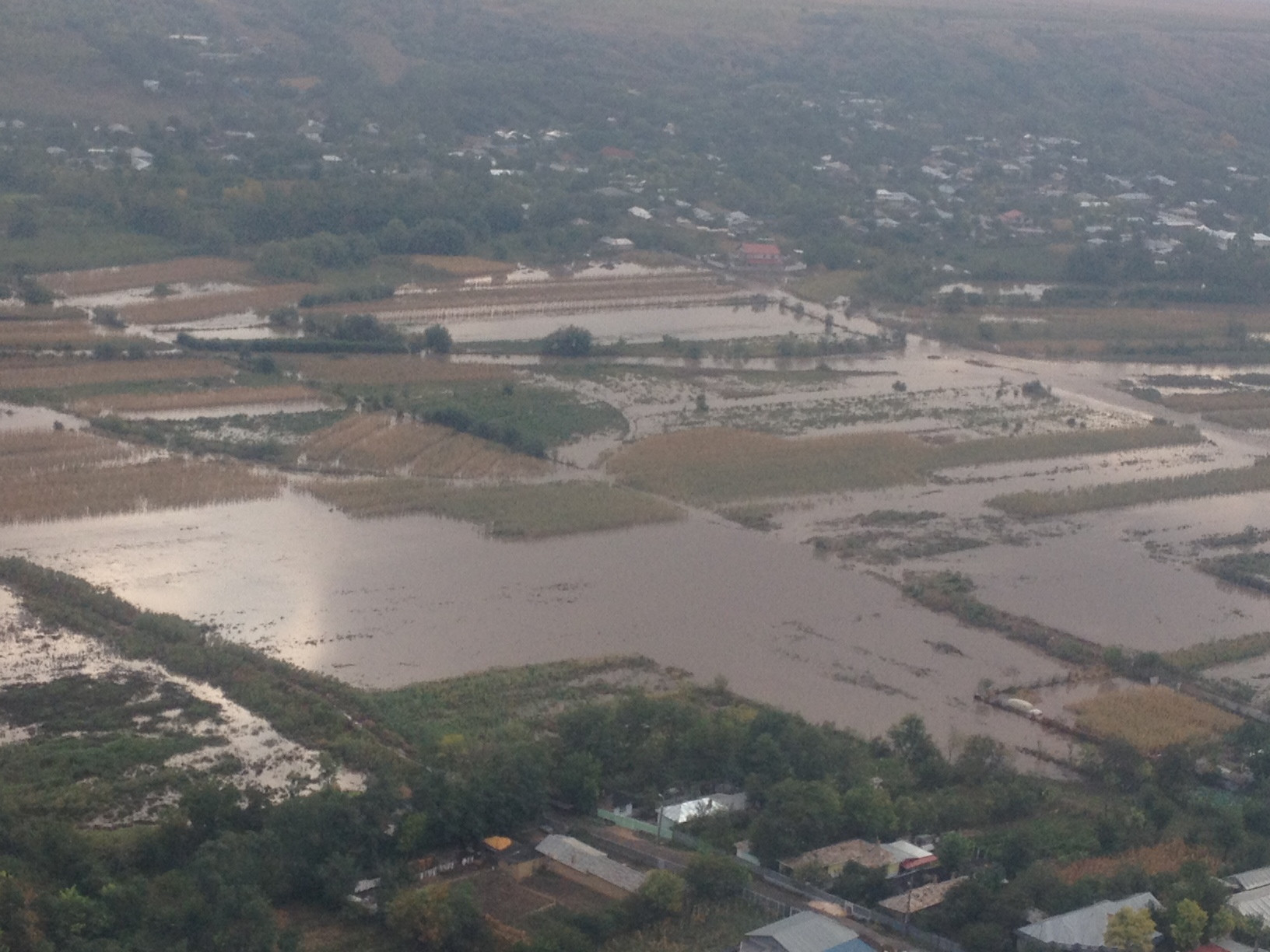 Apa care a adus atatea nenorociri s-a adunat acum intr-un lac imens, intr-o vale dintre doua localitati. Dintr-o ferma de animale, de exemplu, se mai vede doar acoperisul.