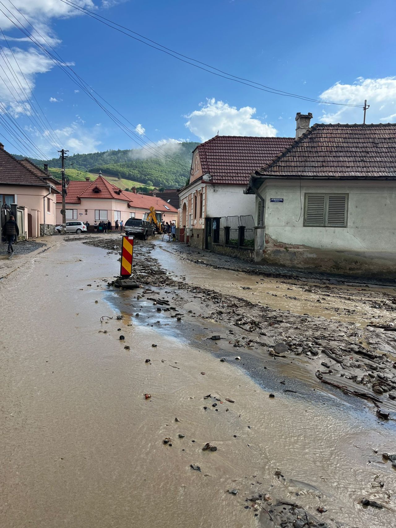 Traficul rutier a fost temporar blocat pe DJ 681/TM din cauza unei alunecări de teren și a aluviunilor acumulate pe carosabil.