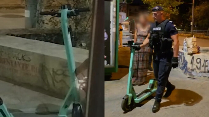 Jandarmii au prins o femeie care tăia frânele unei trotinete electrice. Incidentul a avut loc în Centrul Vechi al Capitalei