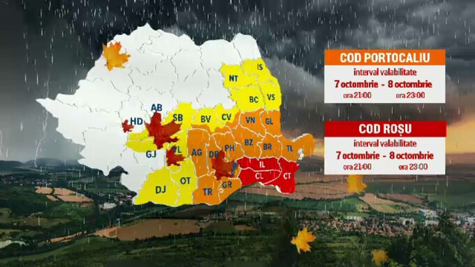 Vremea e apăsătoare începând de luni, însă de marți, de la ora 21.00, 15 județe intră sub Cod portocaliu și roșu de ploi abundente. Vor fi și ninsori viscolite la altitudini mai mari și se va depune un strat consistent de zăpadă în zonele sub Cod galben.