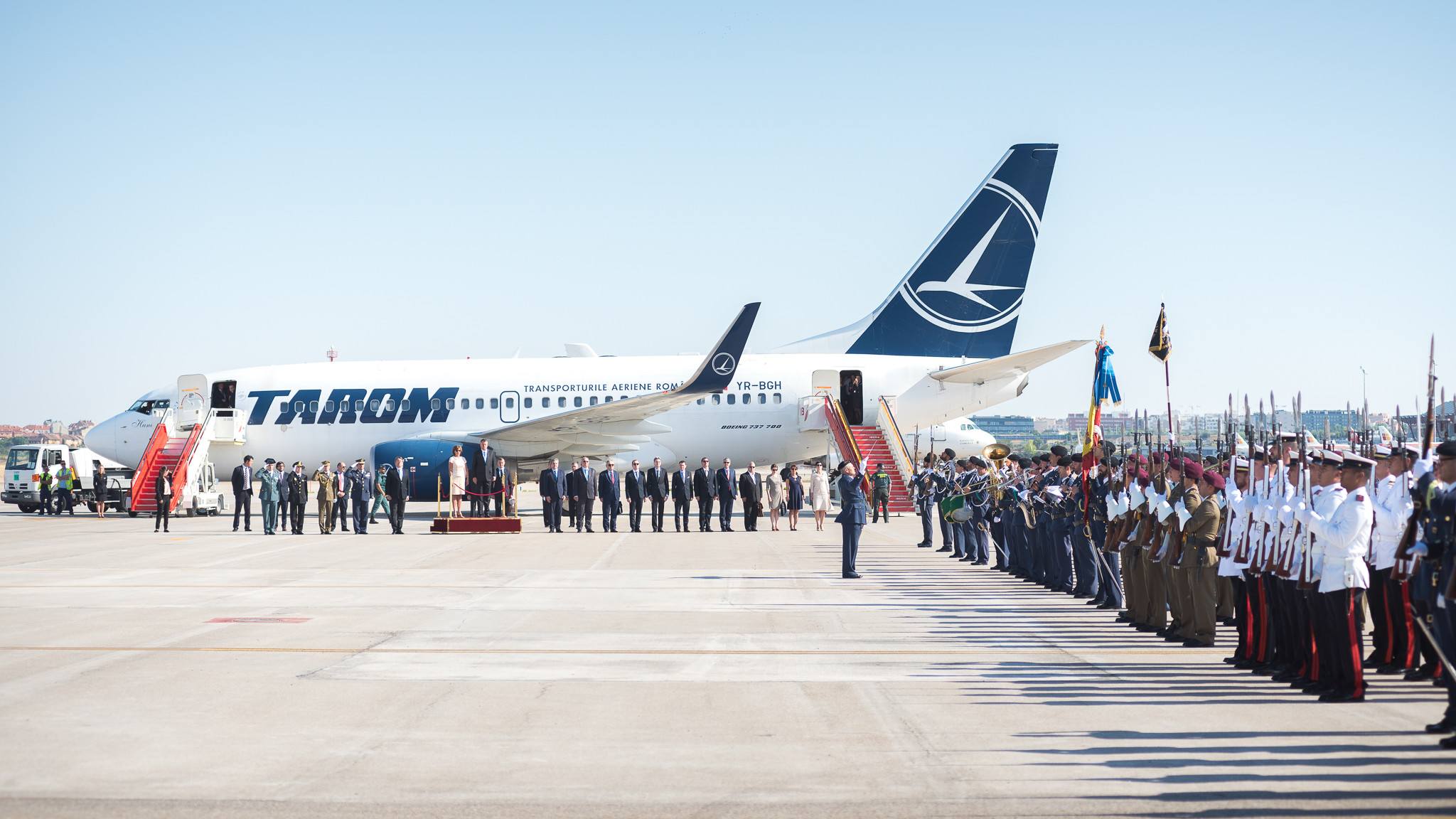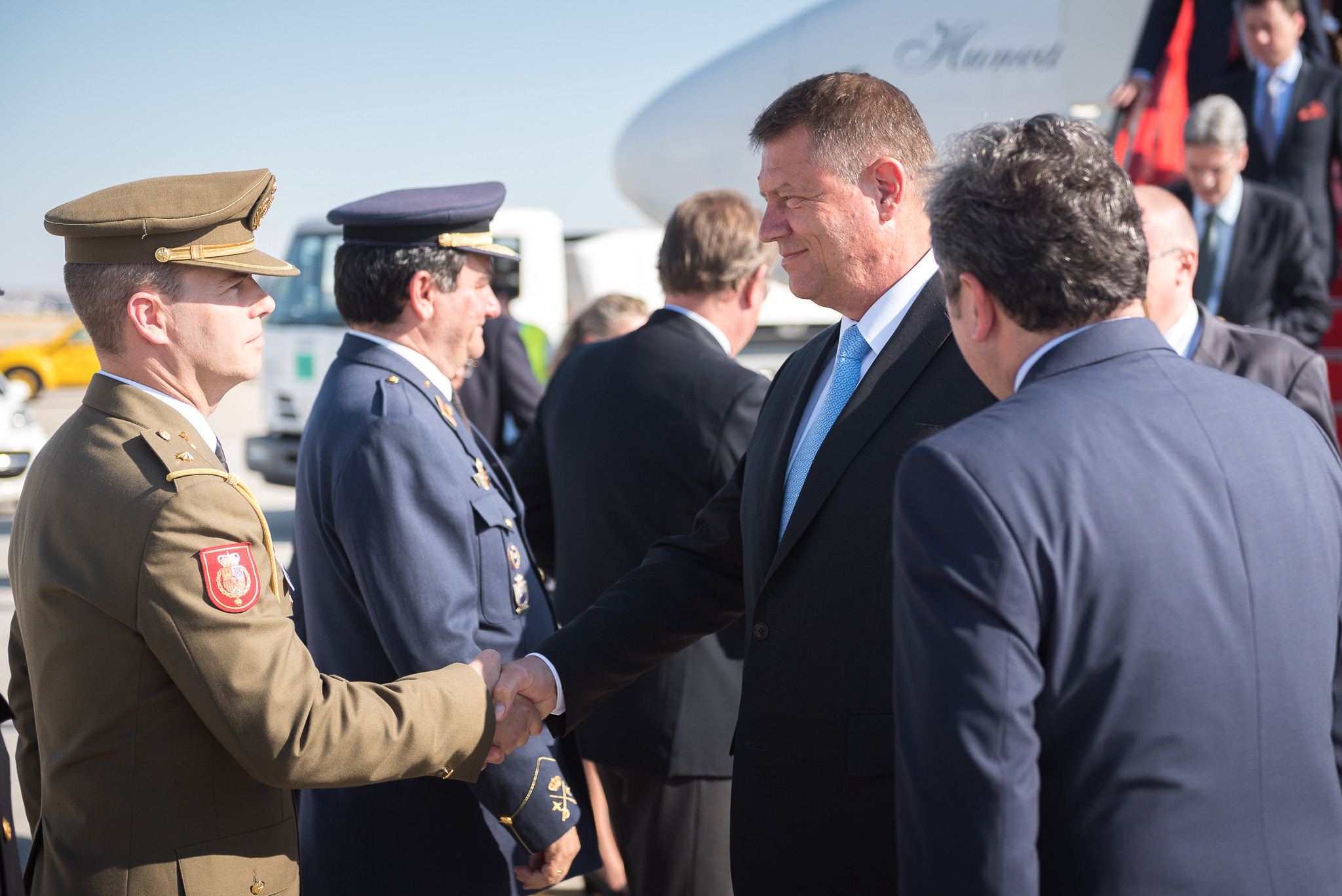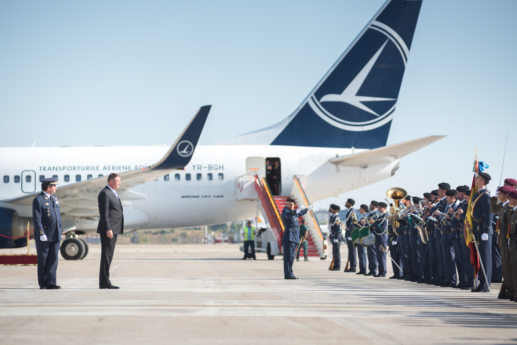 Klaus Iohannis a fost primit la sosirea sa la Madrid cu garda de onoare. Acesta este insotit in vizita externa de sotia sa, Carmen Iohannis, fiind invitat de Regele Felipe al VI-lea si de Regina Letizia.