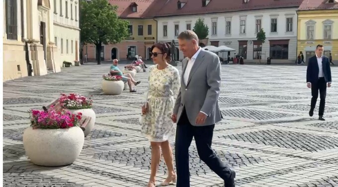 Iohannis, de mână cu soția lui, Carmen, a ajuns duminică dimineață în Piața Sfatului din Sibiu, înainte de ora 10. Fostul președinte al României, Klaus Iohannis, împreună cu soția lui, Carmen au fost prezenți la slujba de duminică, slujbă oficiată la biserica romano-catolică "Sfânta Treime" din Sibiu.