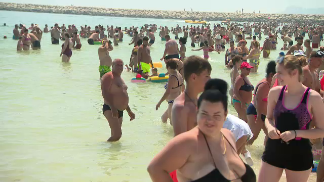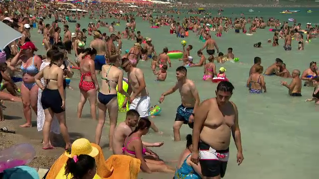 45.000 de mii de turiști sunt în acest sfârșit de săptămână doar la Costinești, după numărătoarea hotelierilor. Aproape jumătate din câți erau în timpul săptămânii pe tot litoralul. Plaja, deja este ticsită. Marea de umbrele și prosoape ajunge până în apă.