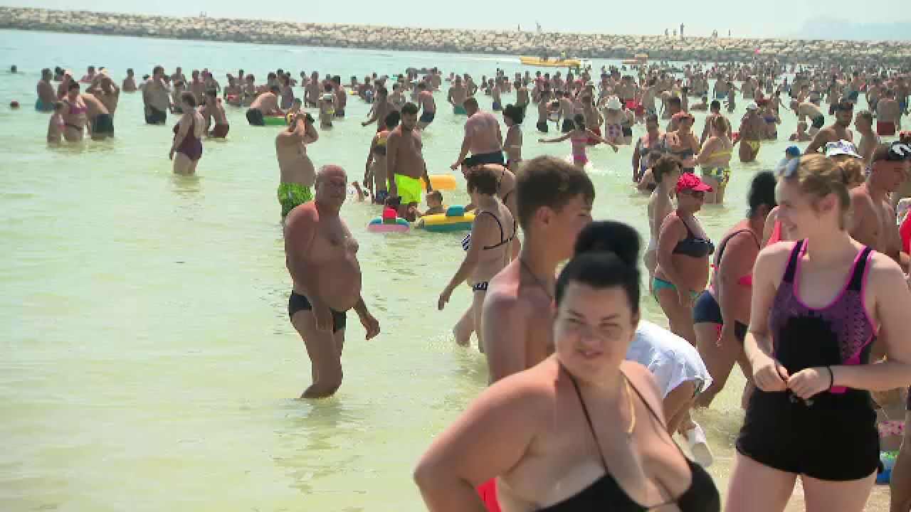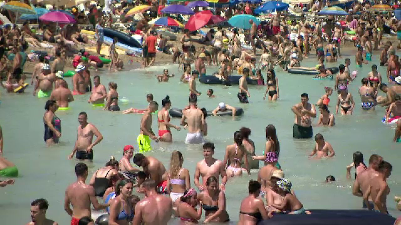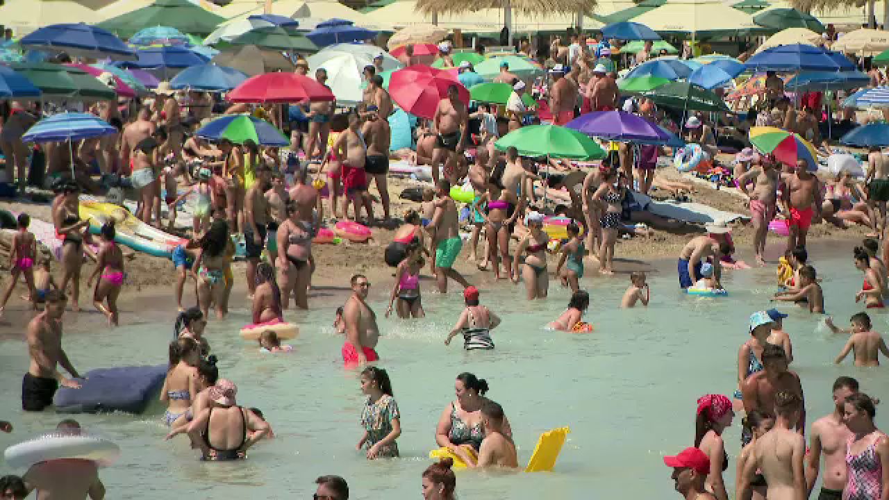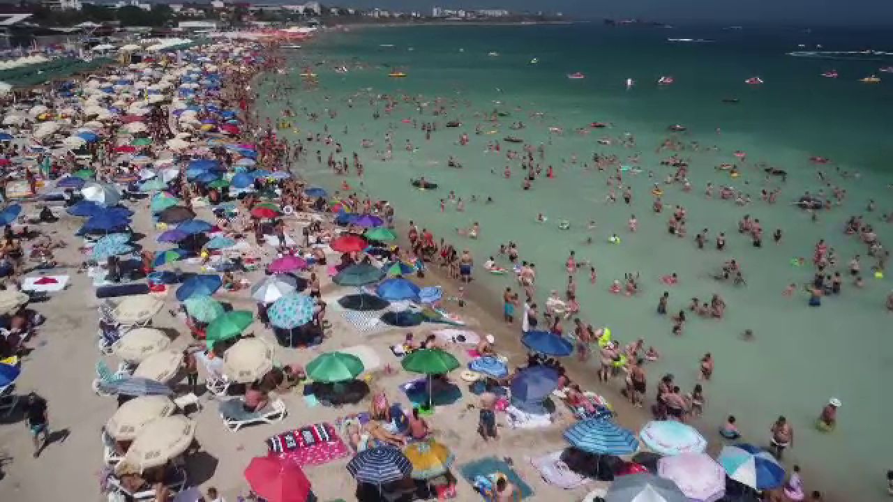 Litoralul românesc e din ce în ce mai aglomerat. Marea de umbrele și prosoape ajunge până în apă