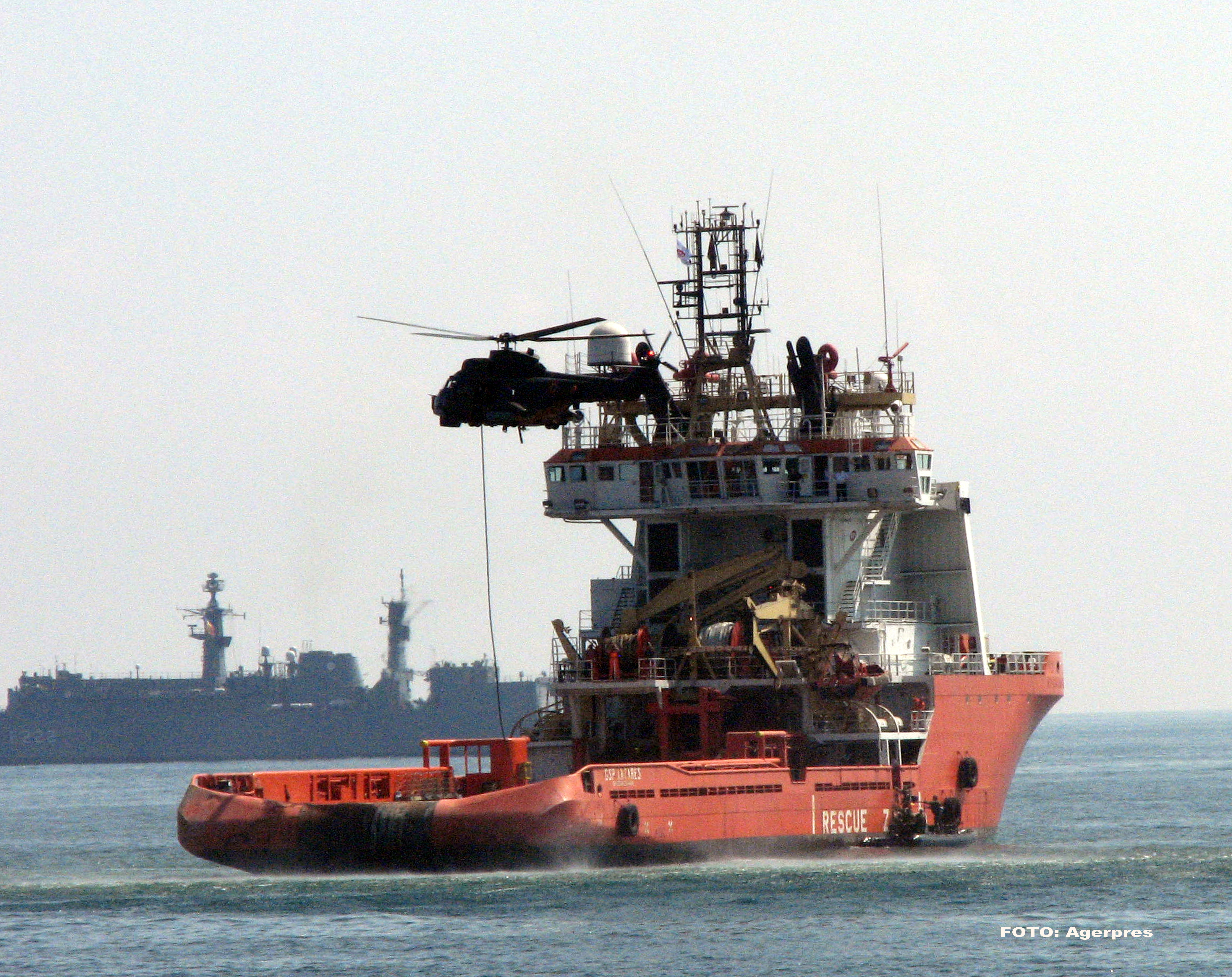 Scafandrii au coborat din elicopter, iar cei lansati din salupe au simulat atacarea uscatului. Marinaii aflati pe mal au avut misiunea de a respinge desantul maritim si aerian. O coborare in coarda, in echipamentul complet de lupta cu automatul pregatit pentru tragere, ceea ce s-a si intamplat.