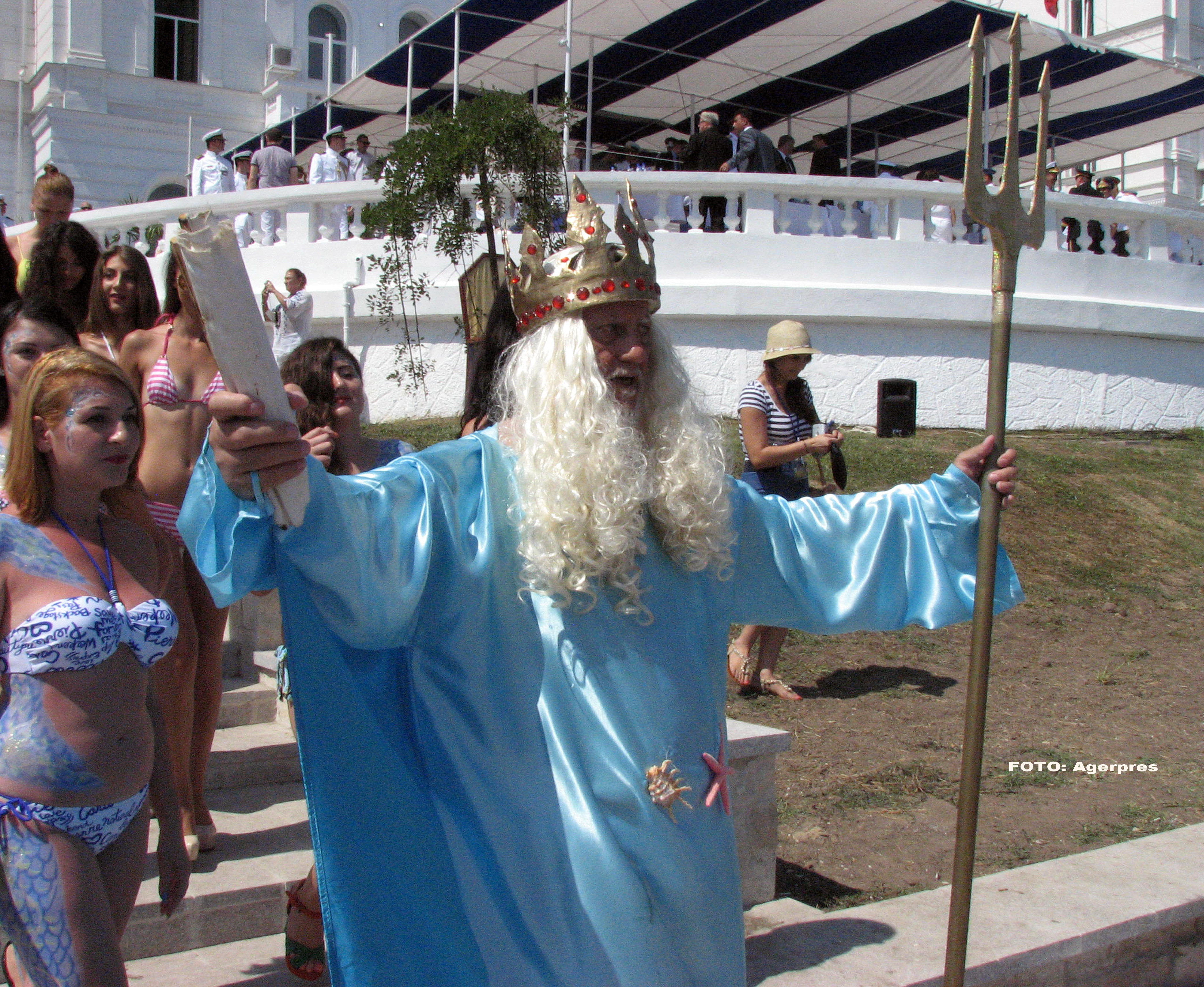 Chiar in timp ce inaltul prelat isi rostea discursul, Zeul Neptun, patronul spiritual al serbarilor de sambata, nu a mai avut rabdare si s-a apropiat, insotit de frumoasele nimfe, spre mal.