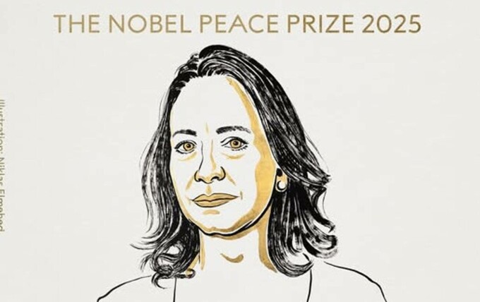 Premiul Nobel pentru Pace 2025 a fost acordat Mariei Corina Machado, pentru „munca ei neobosită în promovarea drepturilor democratice ale poporului venezuelean și pentru lupta sa pentru o tranziție pașnică și justă de la dictatură la democrație”.